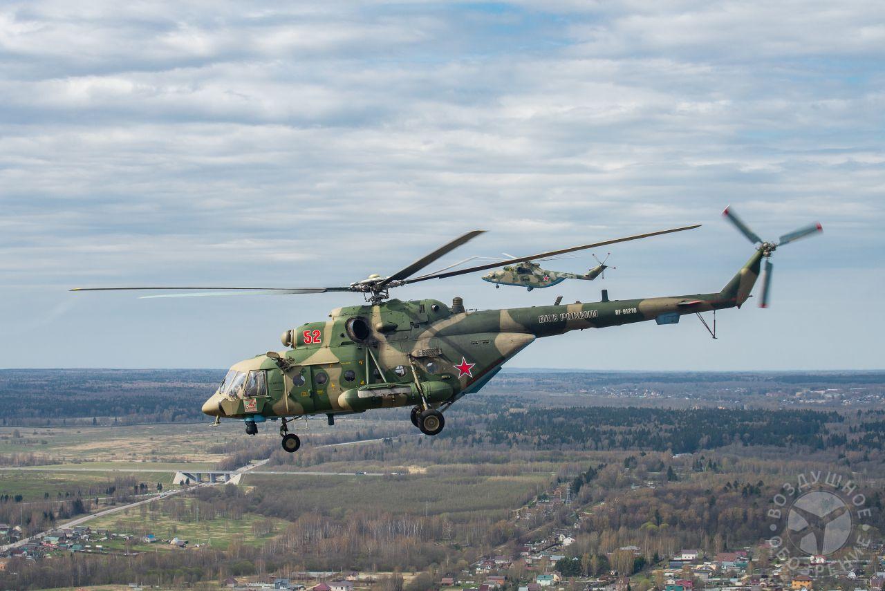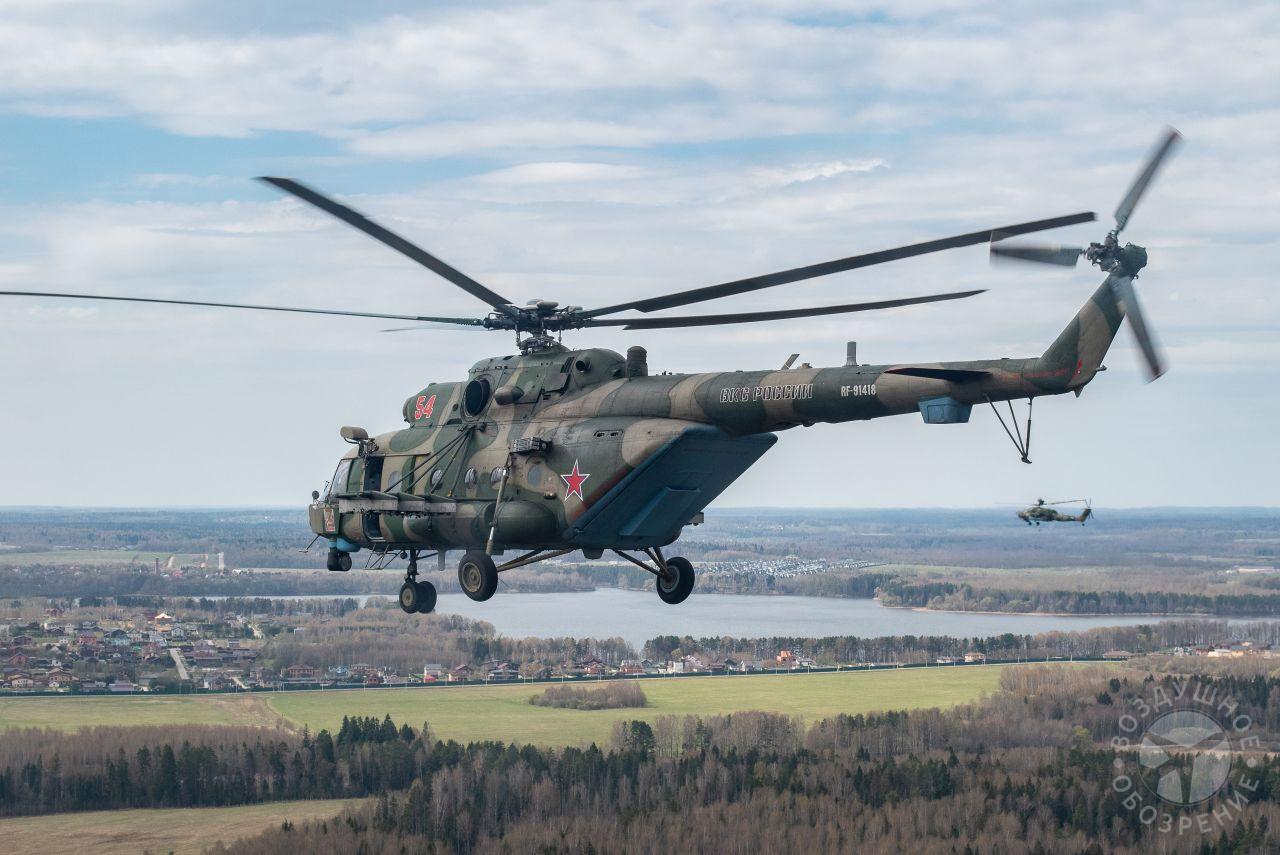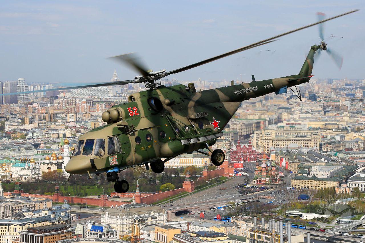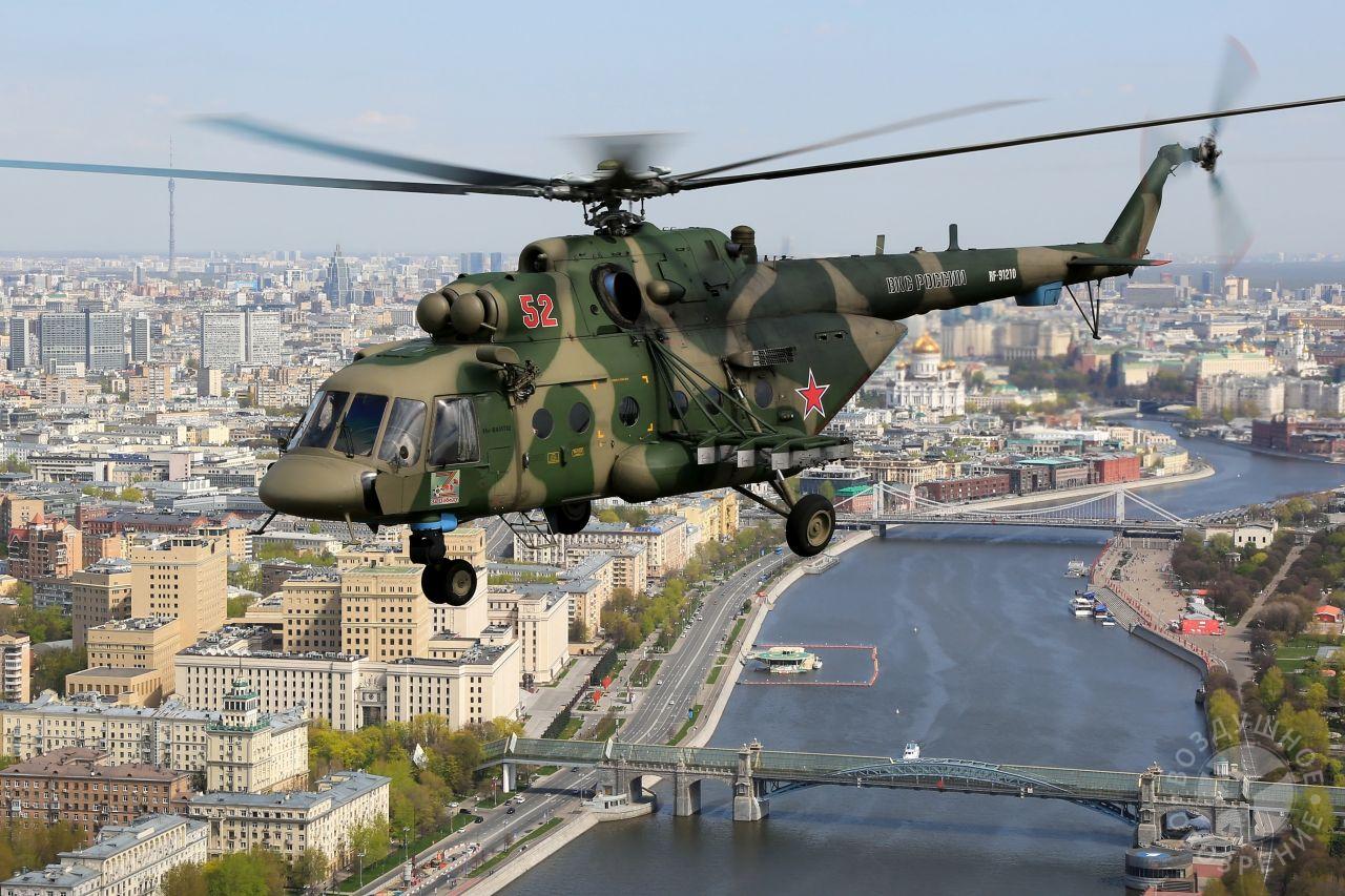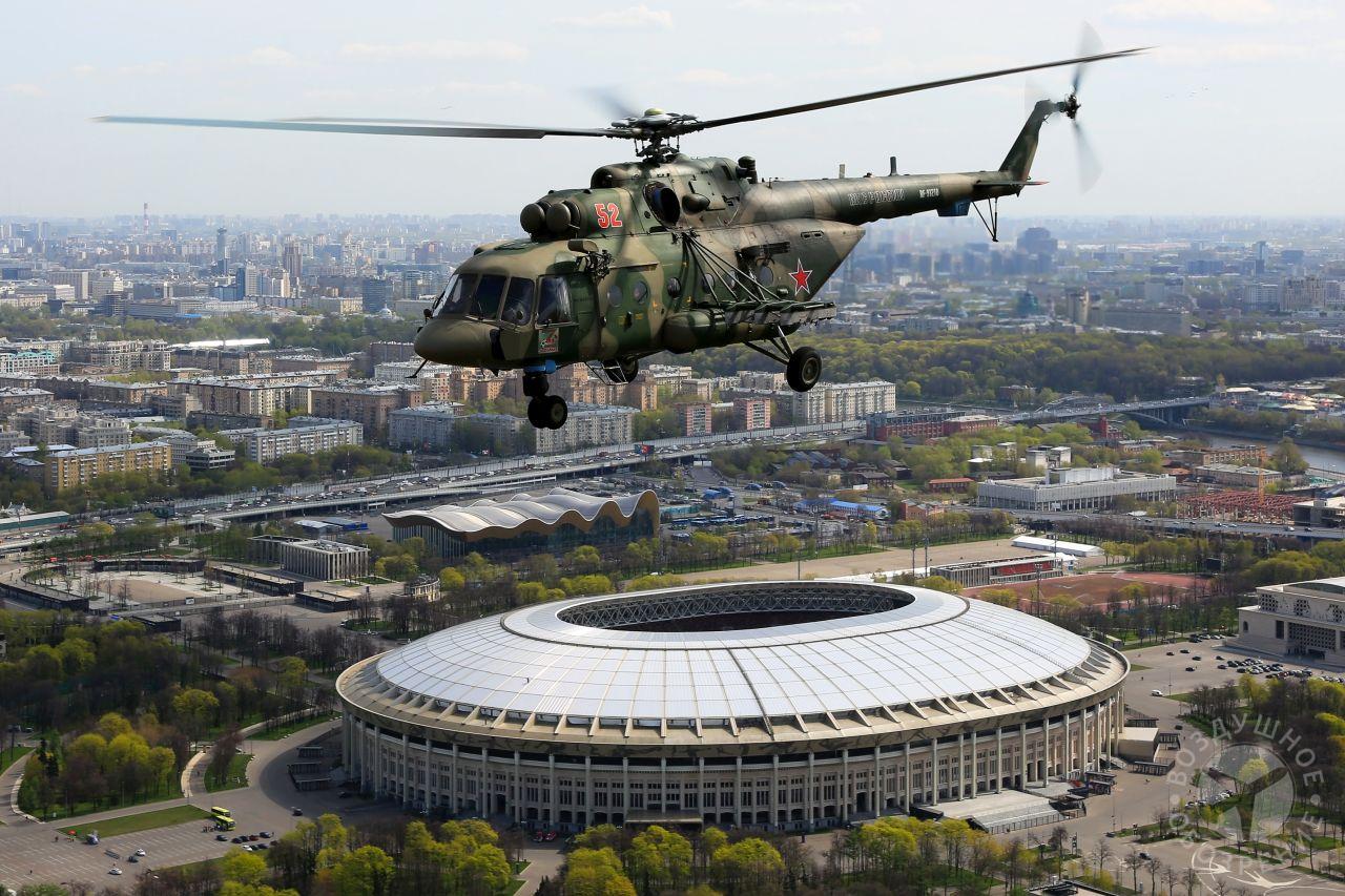 После того как весь строй поднялся в воздух, мы постепенно начали обходить его справа. Была возможность снять неспеша все борта. И вот наш борт добрался до первой группы. Ведущий Ми-26 и пара ведомых Ми-24 шли красиво и плотно. За ними мелькали леса, поля и дачные поселки.Где-то между Митино и Красногорском резервные борта получают команду на смену курса и возврат на базу. Удается сделать несколько красивых фото резервных бортов на фоне улетающих на Москву вертолетов, но на этом программа съемок не заканчивается. Постепенно к нашему Ми-26 подходят Ми-24, Ми-28, Ка-52 и начинают словно позировать.Из-за размеров и массы Ми-26, в нем не так чувствуются перегрузки, как в Ми-8, но зато вибрации ощутимее. Хотя, и с ними можно справляться, чтобы не мешали съемке.