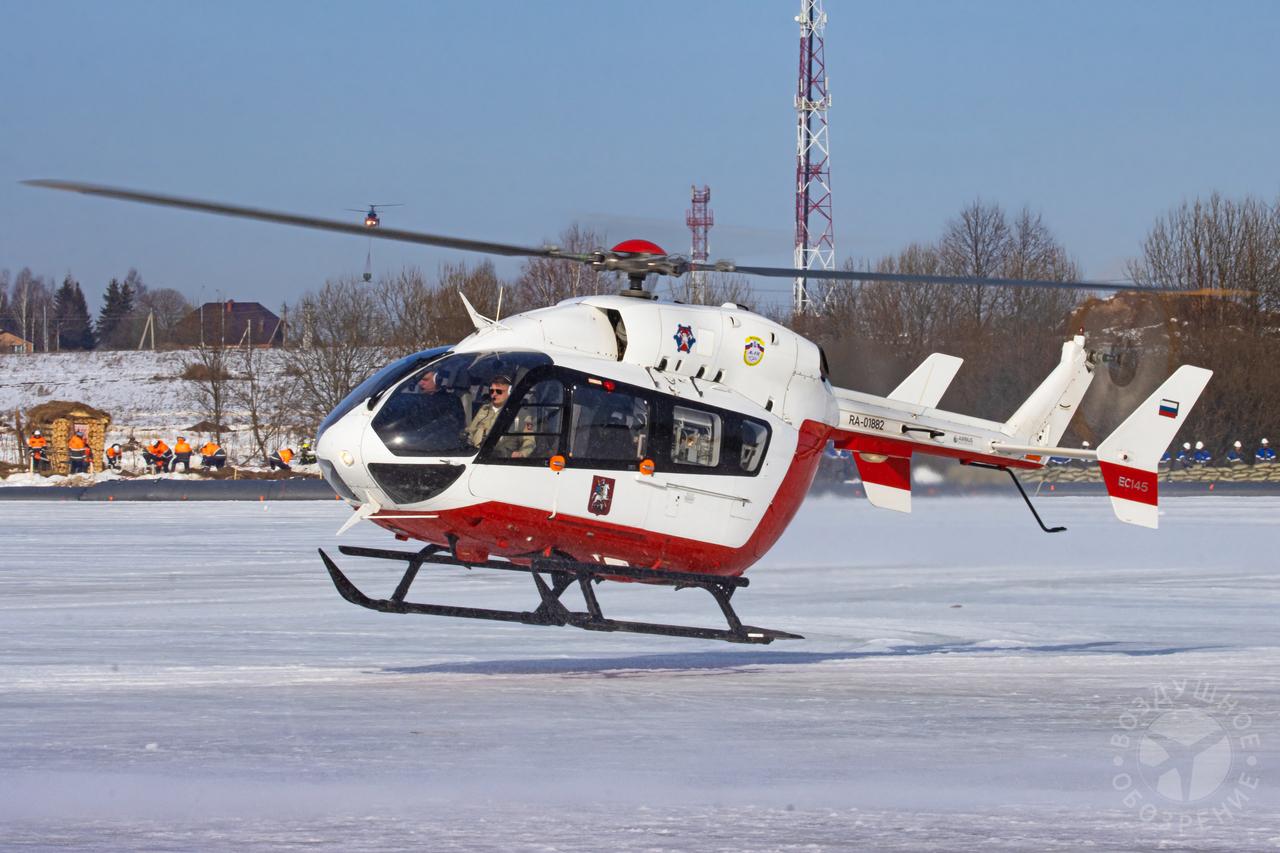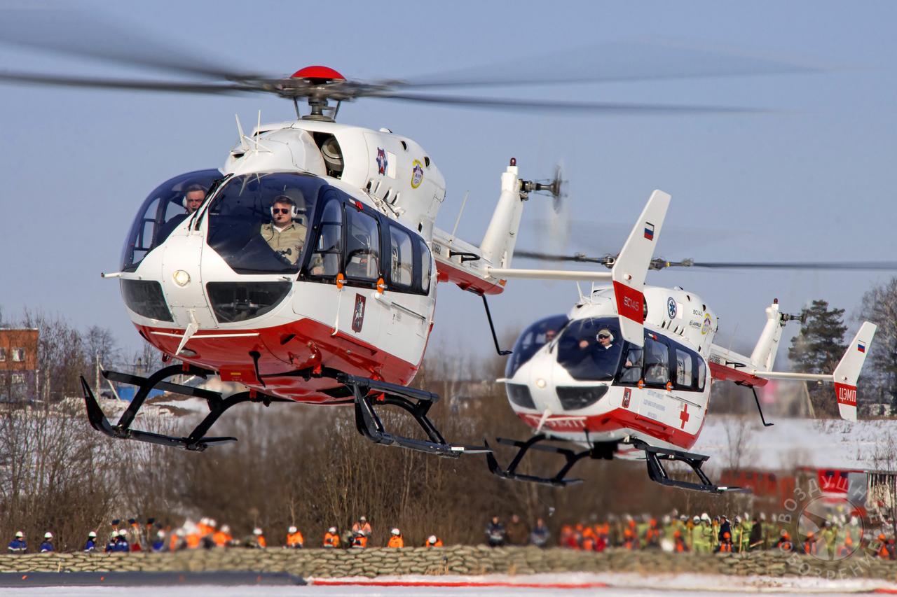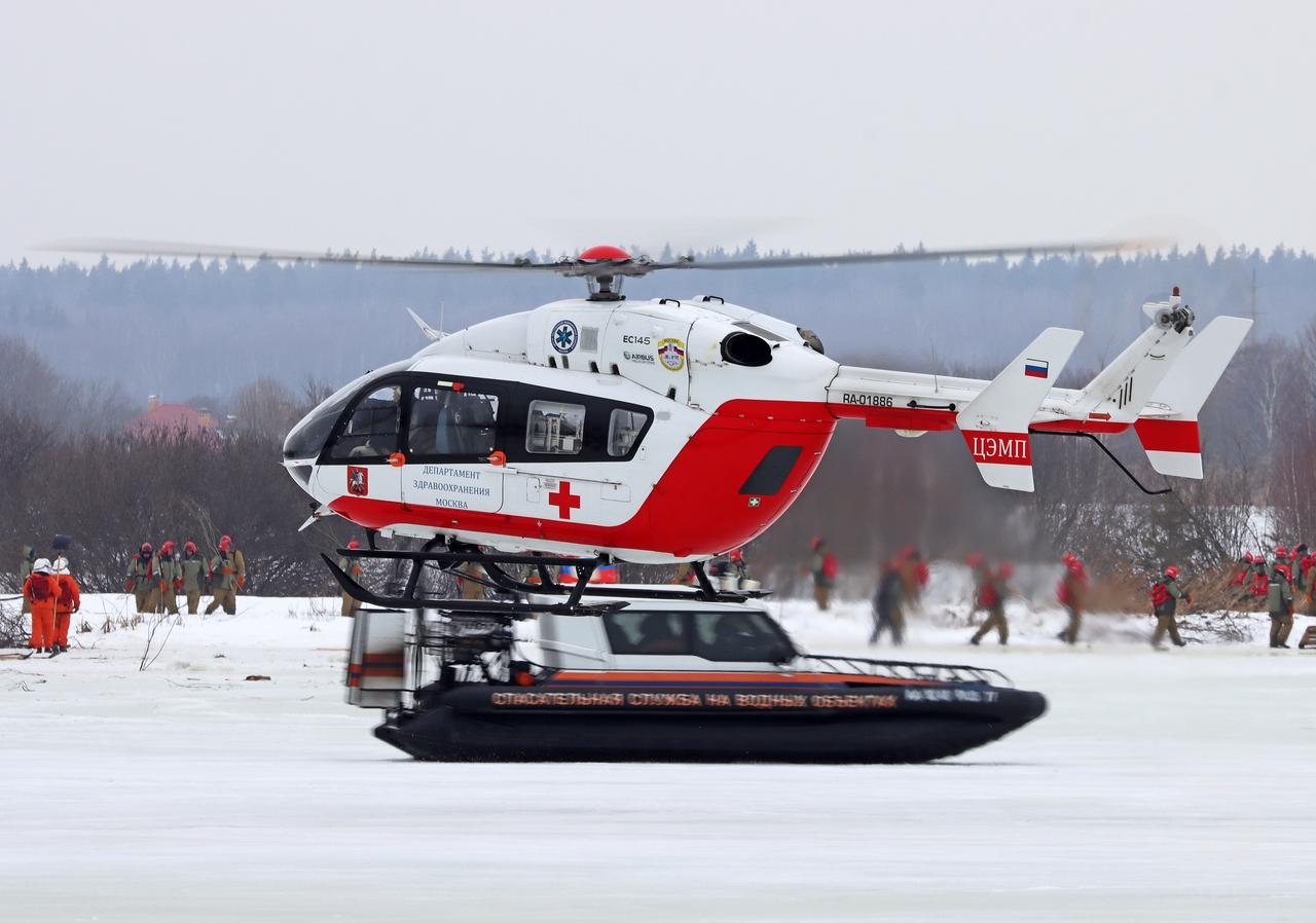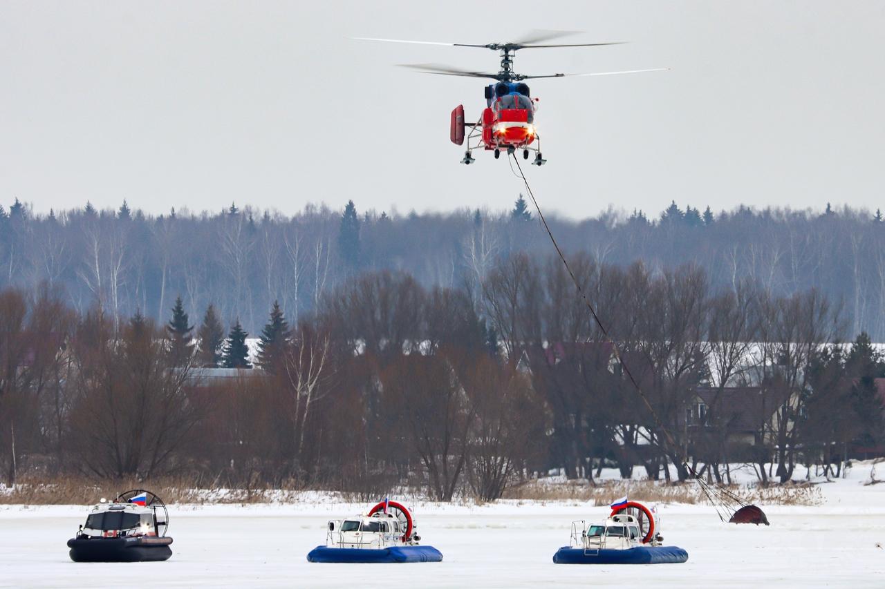 Для немедленной эвакуации пострадавших в лечебные учреждения привлечены вертолеты ВК117С-2, которые осуществили посадку прямо на лед водоема. Чтобы как можно скорее доставить спасенных, задействованы сразу 2 вертолета.