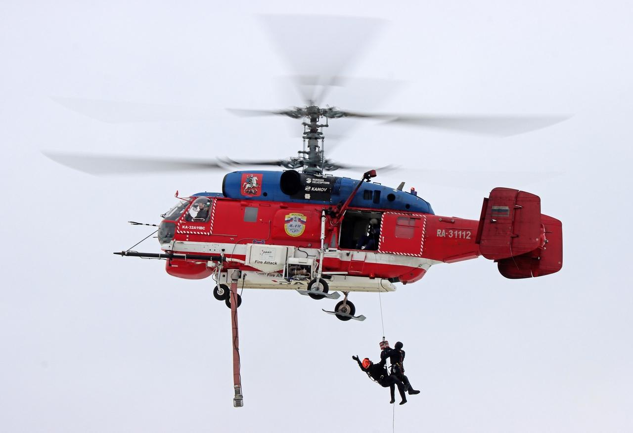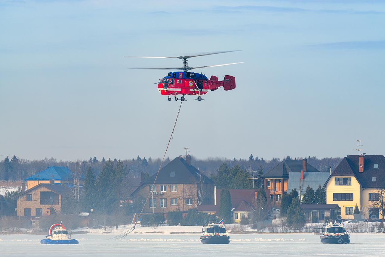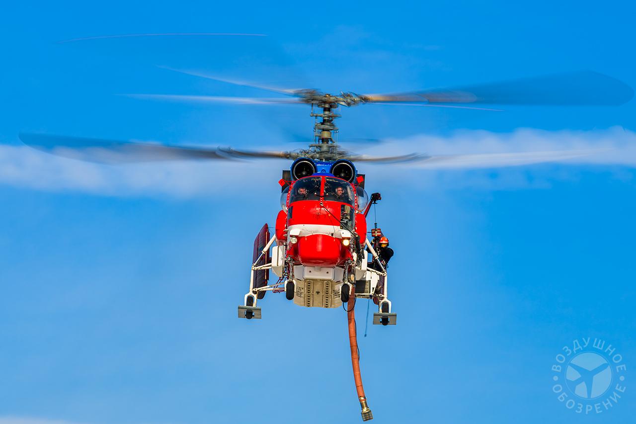 Многоцелевой Ка-32А при помощи подвесного гидравлического захватного устройства помог расчистить завалы из поваленных деревьев, оперативно доставил передвижную насосную станцию непосредственно на место подтопления, а с помощью подъемного механизма поднял на борт спасателя и пострадавшего. Во втором этапе учения вертолеты Ка-32 оказали поддержку с воздуха в тушении пожара: с помощью водосливного устройства, а модернизированный Ка-32А11ВС оборудован новейшей системой горизонтального, бокового и вертикального пожаротушения.