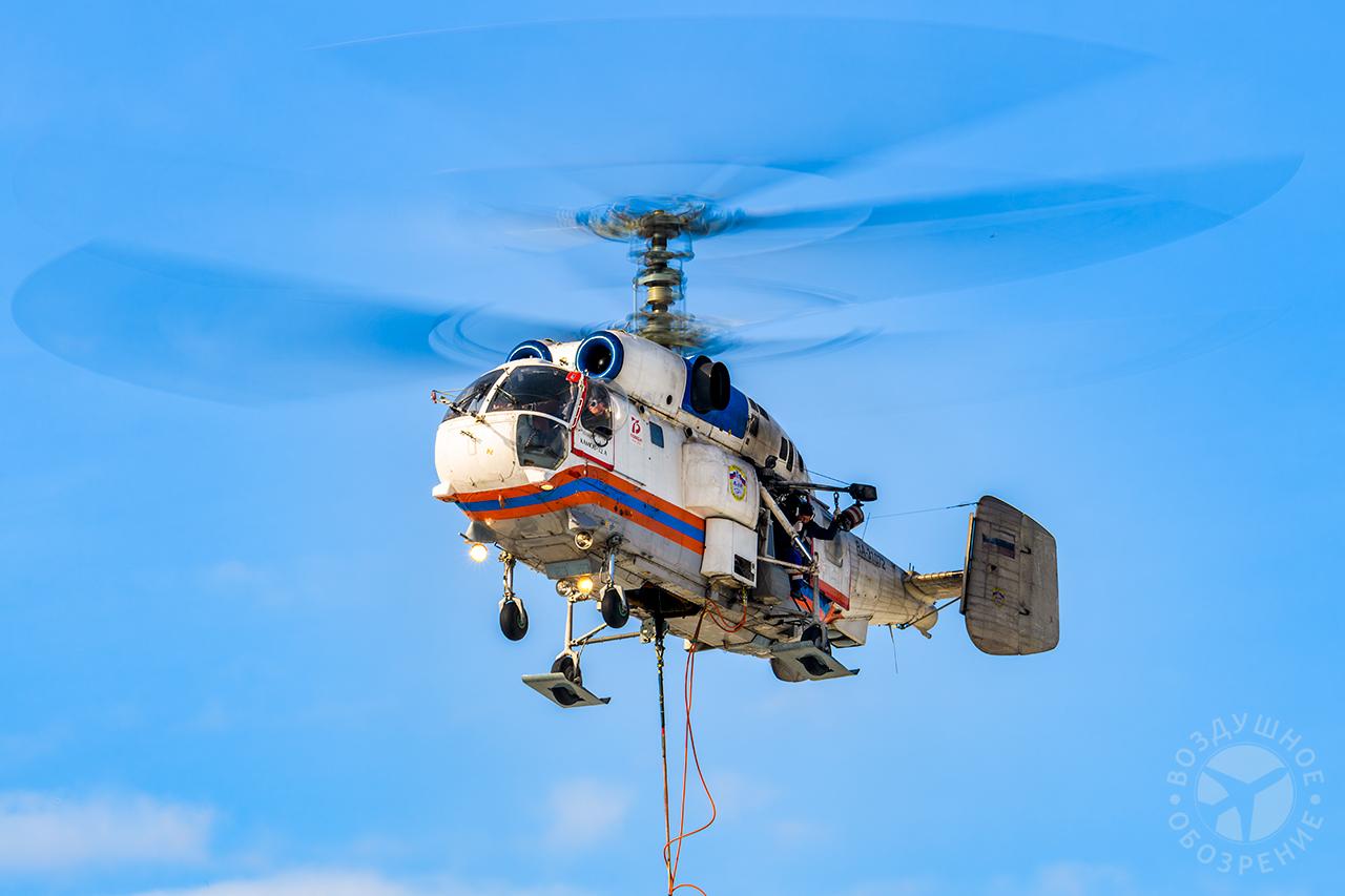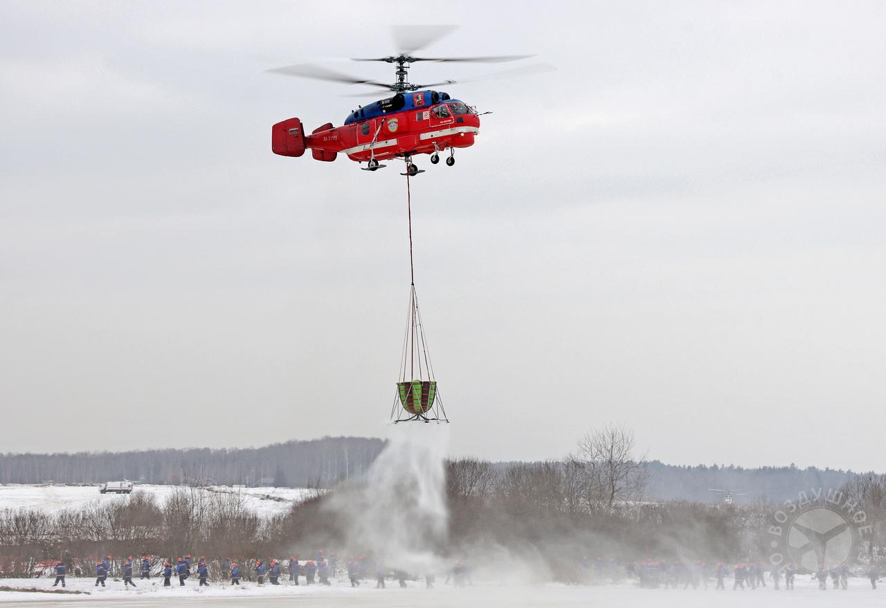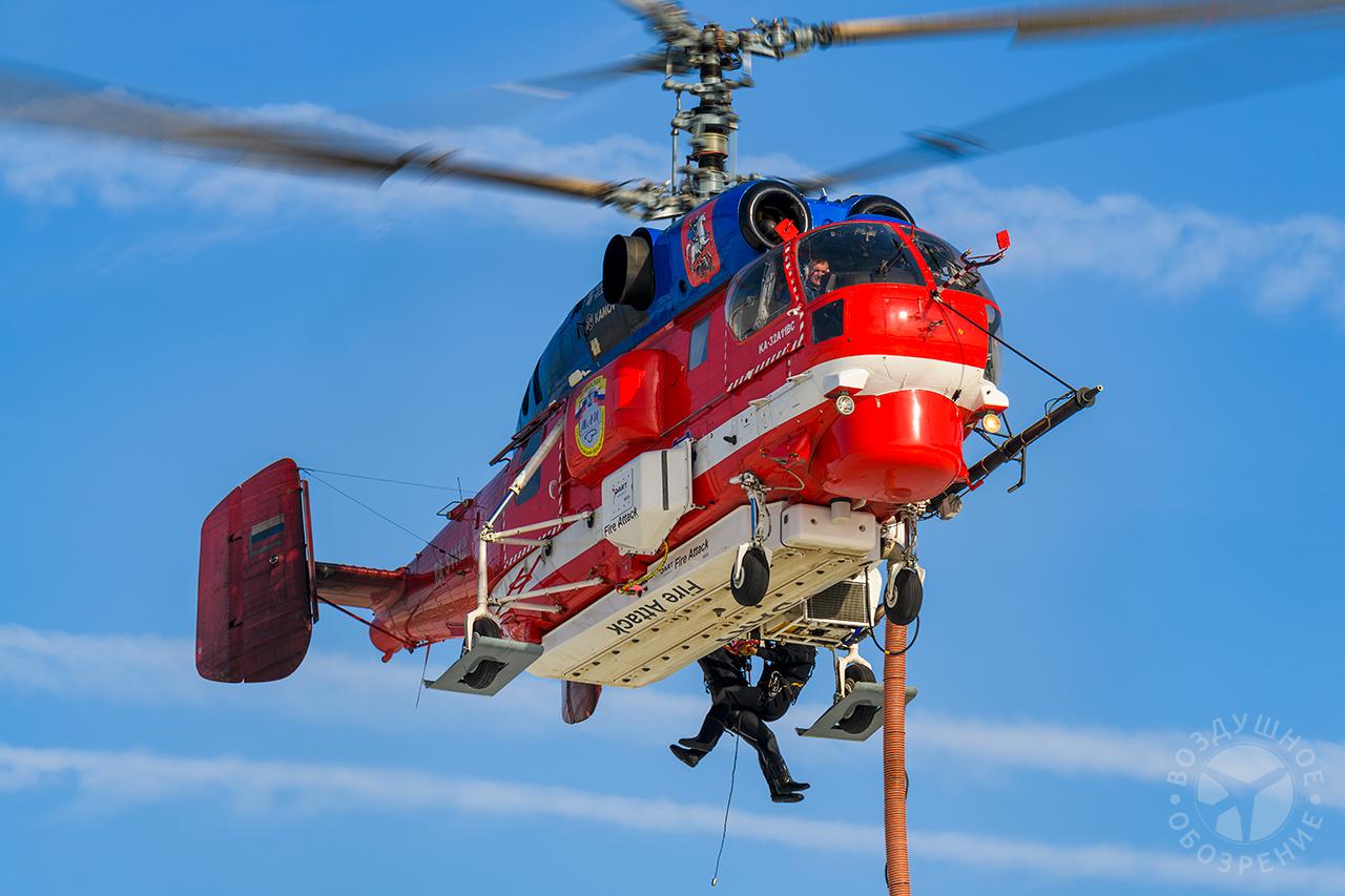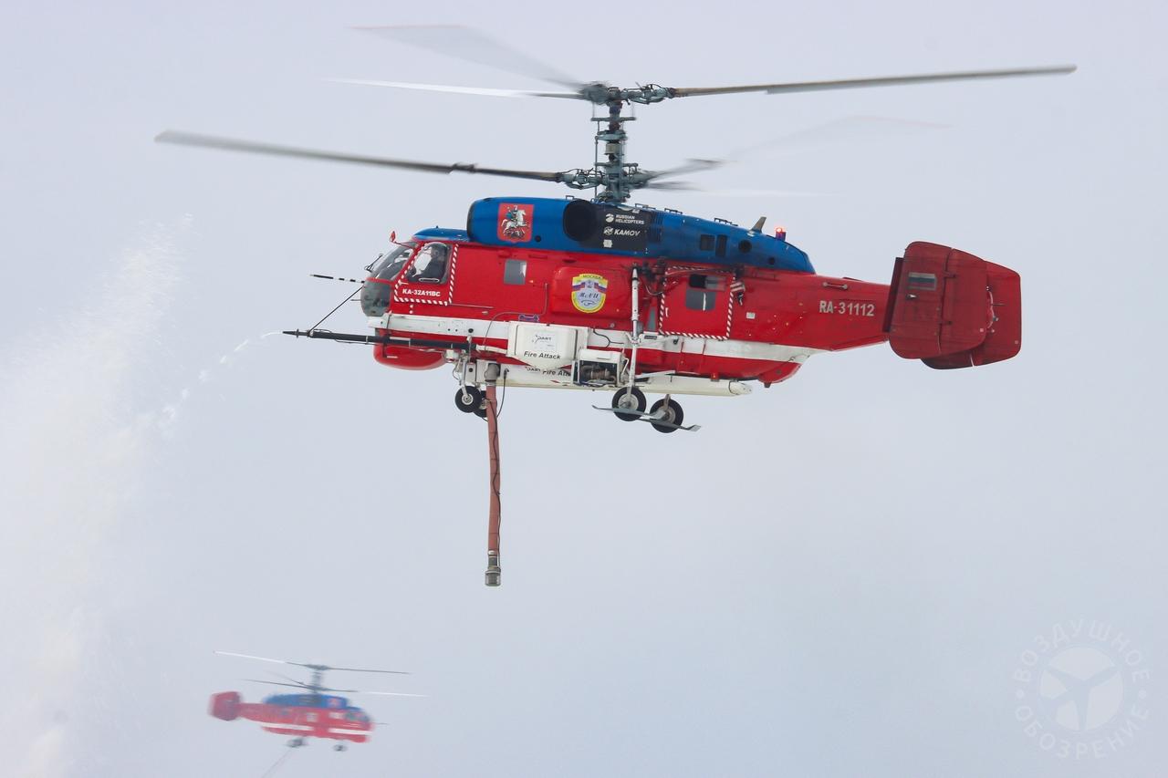 Многоцелевой Ка-32А при помощи подвесного гидравлического захватного устройства помог расчистить завалы из поваленных деревьев, оперативно доставил передвижную насосную станцию непосредственно на место подтопления, а с помощью подъемного механизма поднял на борт спасателя и пострадавшего. Во втором этапе учения вертолеты Ка-32 оказали поддержку с воздуха в тушении пожара: с помощью водосливного устройства, а модернизированный Ка-32А11ВС оборудован новейшей системой горизонтального, бокового и вертикального пожаротушения.
