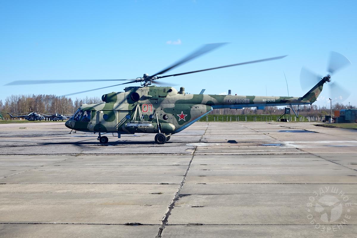 Возглавил торжественный строй тяжелый транспортный вертолёт Ми-26, вслед за которым пролетели звенья многоцелевых вертолётов Ми-8, ударных Ми-28 «Ночной охотник» и Ка-52 «Аллигатор». Вслед за вертолётом в небе пролетели транспортные самолёты Ан26, Ан-12 и Ту-134. Завершили пролёт тактической авиационной группы многоцелевые сверхманёвренные истребители Су-35С, истребители Су-34, а также истребители перехватчики дальнего радиуса действия МиГ-31.