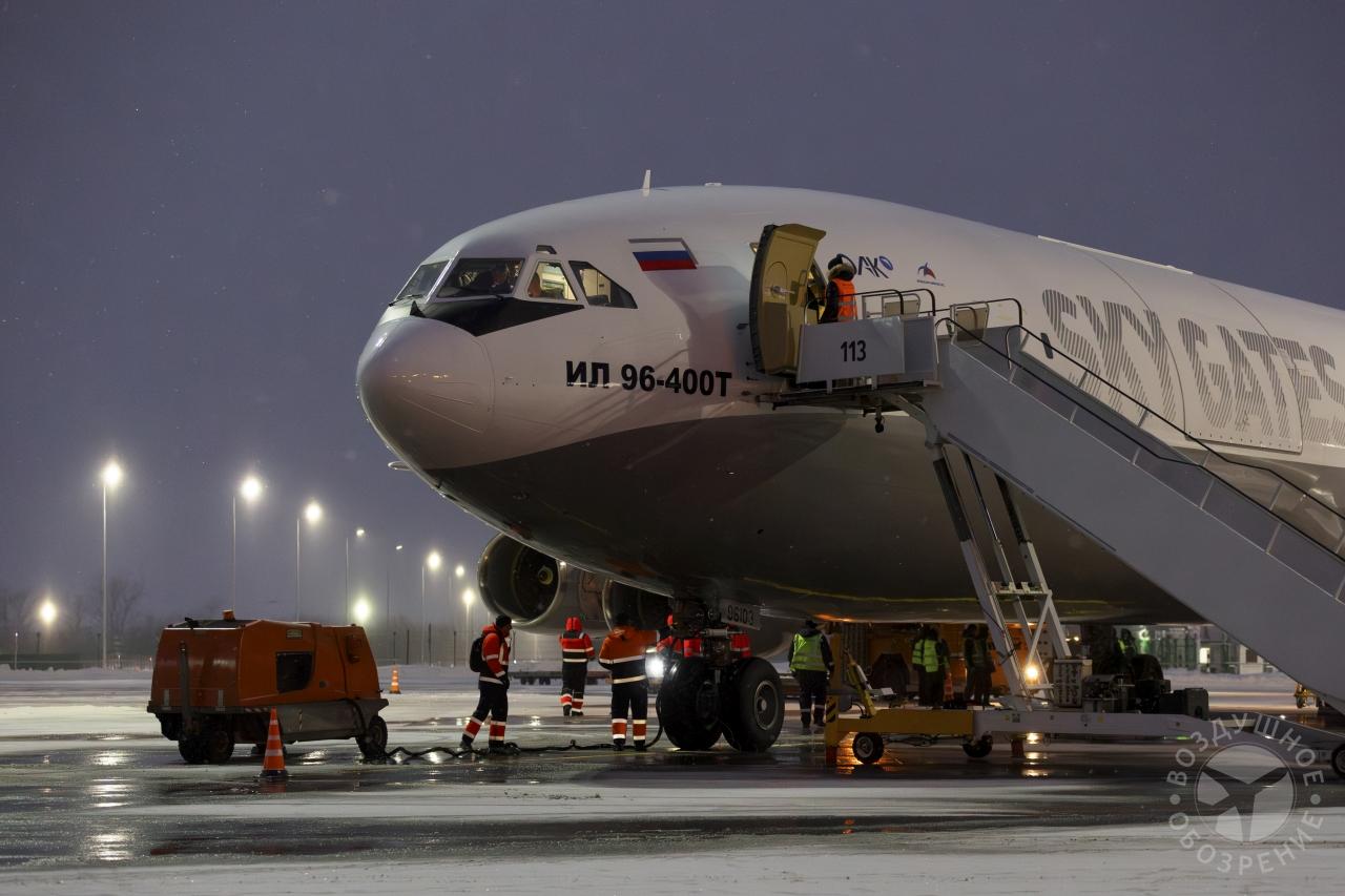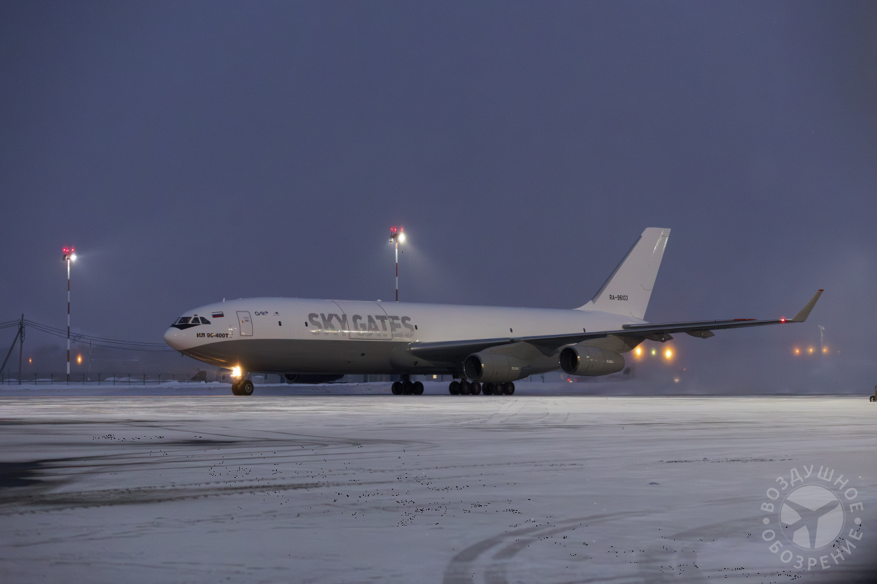 Самолет Ил-96-400Т – грузовая версия в семействе знаменитых российских широкофюзеляжных самолетов Ил-96. Борт, поступивший в эксплуатацию в Sky Gates, в 2023 году на Воронежском авиазаводе прошел комплекс работ по восстановлению лётной годности, включая актуальную форму технического обслуживания, продление срока службы воздушного судна и выполнение бюллетеней.