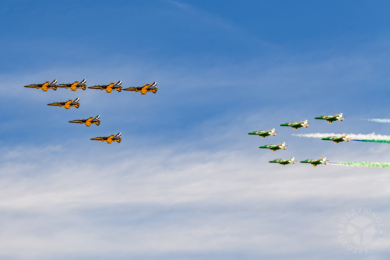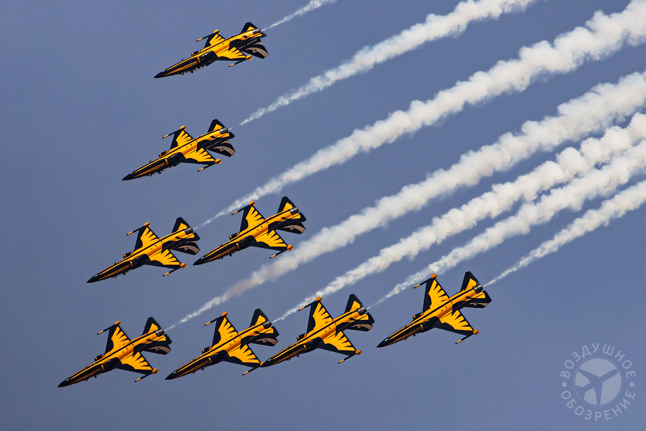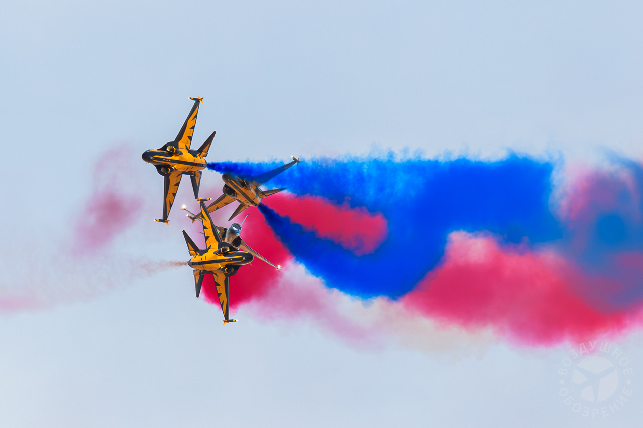 «Маневр кобры» — самолёты летят прямо вверх в воздух, а затем внезапно опускают нос, выполняя резкий поворот и уходя от аудитории.