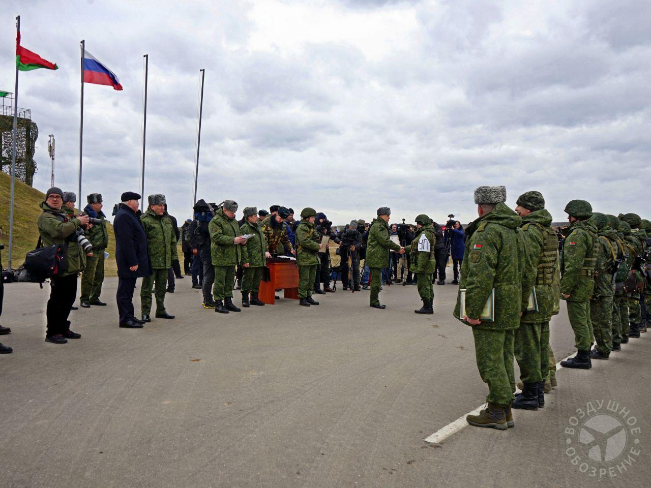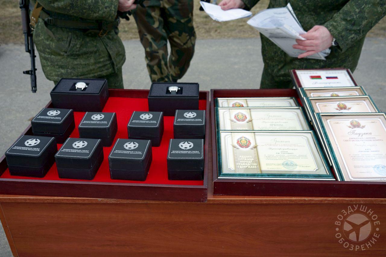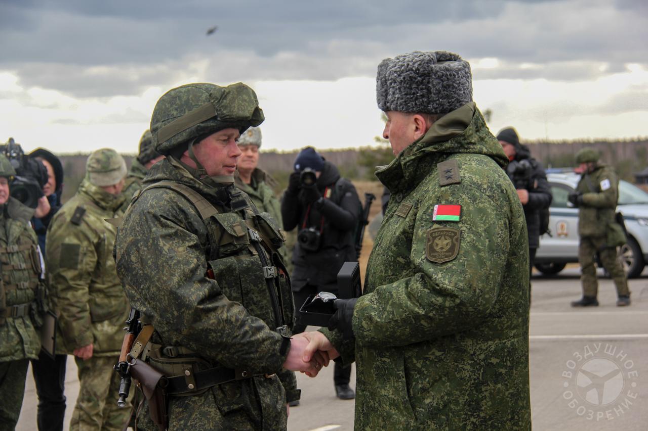 По итогу розыгрыша Министр обороны Республики Беларусь генерал-лейтенант Виктор Хренин наградил участников совместного оперативного учения вооруженных сил Беларуси и России «Союзная решимость-2022» на полигоне «Обуз-Лесновский».