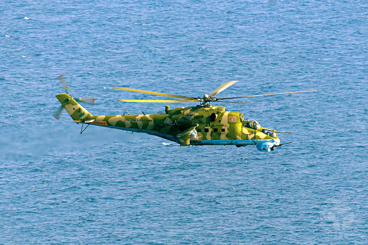 Во время вылетов вертолетчики нанесли удары по морским целям поодиночке и в составе пар с применением неуправляемых ракет и универсальных пушечных контейнеров со встроенной двуствольной 23-мм скорострельной пушкой ГШ-23. Выполнение практических стрельб способствовало повышению уровня выучки летчиков, совершенствованию новейшей тактики, применяемой в ходе проведения Специальной военной операции. Привлечённый к учениям противодиверсионный катер Балтийского флота, носящий имя Героя России Владимира Носова, использовался для спуска на воду управляемых беспилотных катеров-целей, которые и были обнаружены и успешно уничтожены летчиками Ми-24.