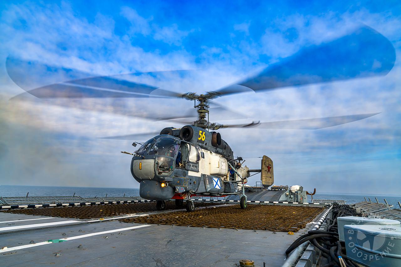 В рамках учений были отработали тактические приемы поиска и слежения за подводными лодками условного противника, а также осуществили взаимодействие с кораблем при выполнении противолодочных задач в морском полигоне. В общей сложности было задействовано около 10 экипажей корабельных вертолетов Ка-27М и Ка-27ПС.