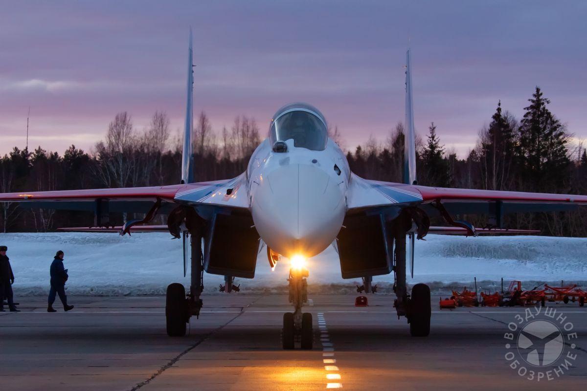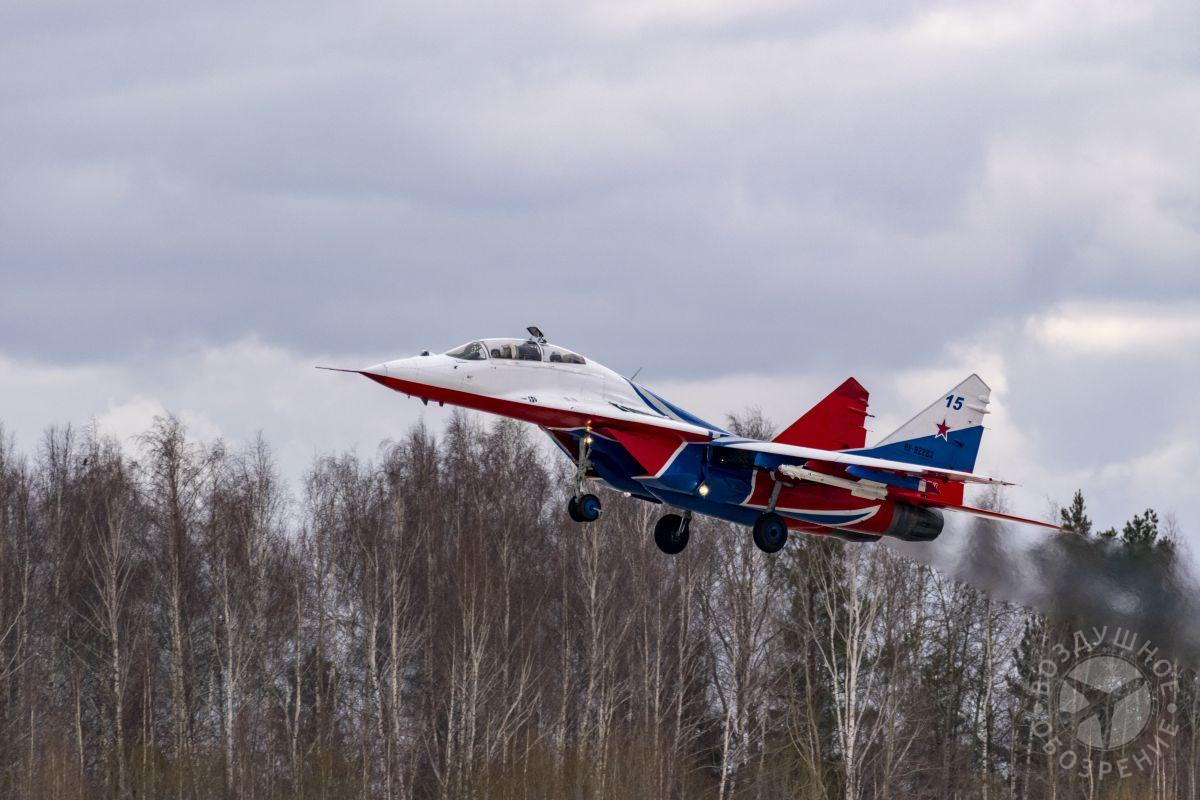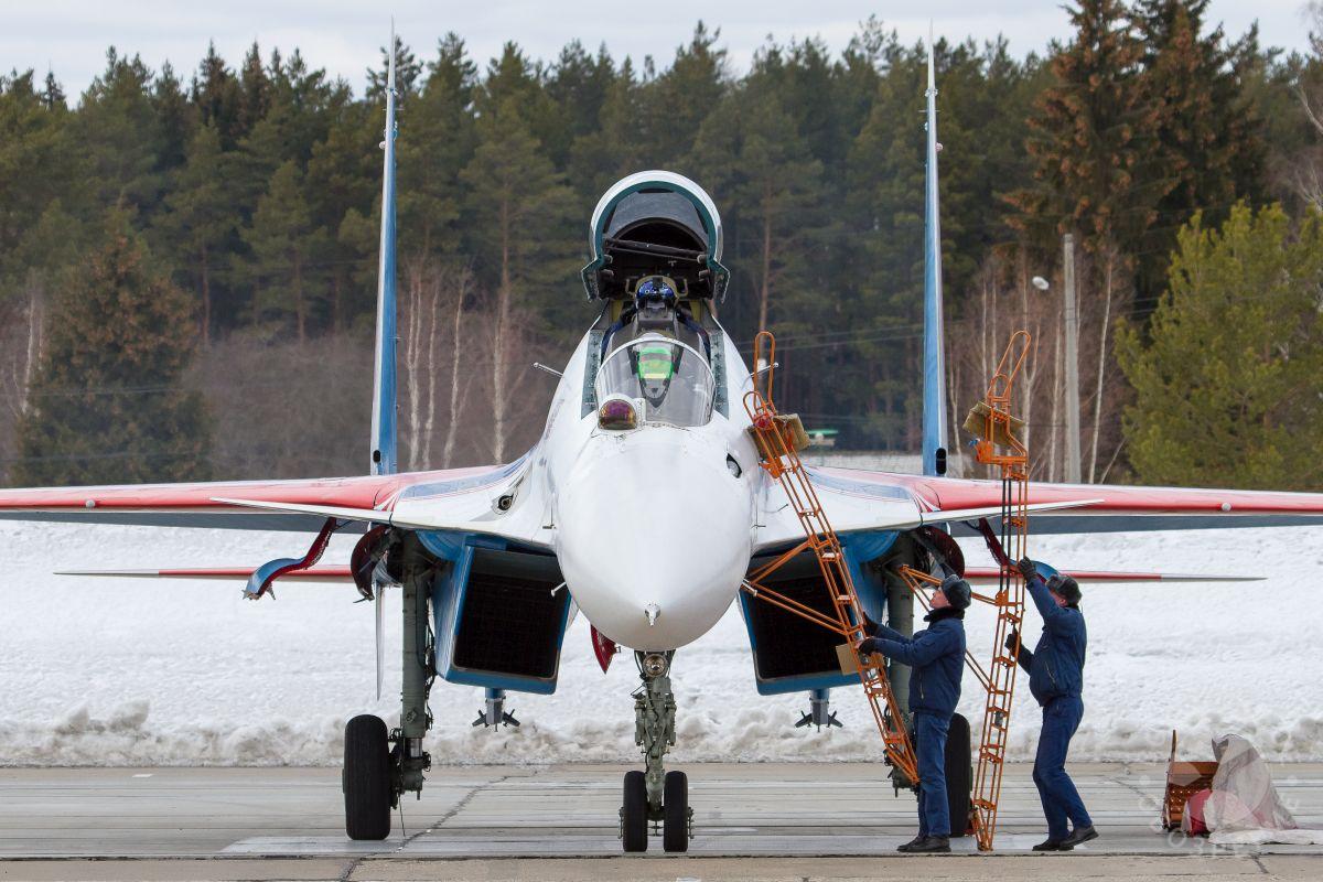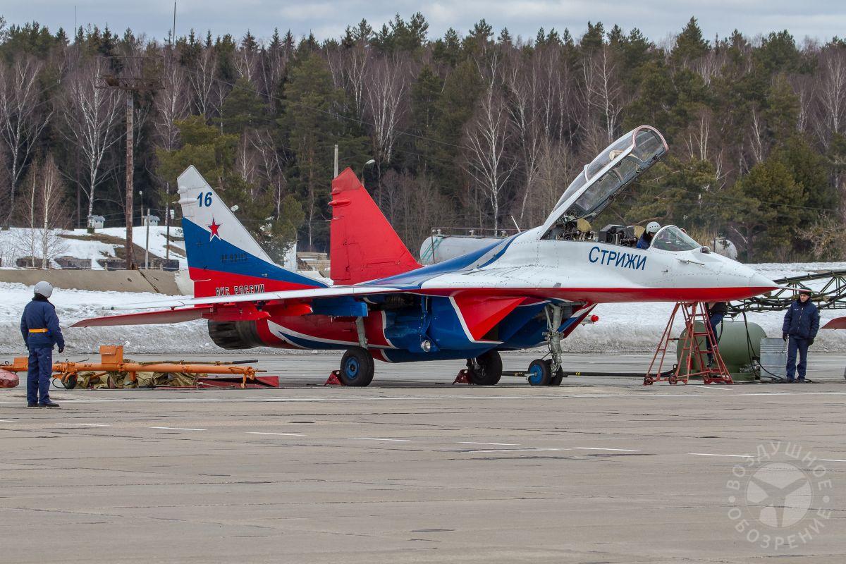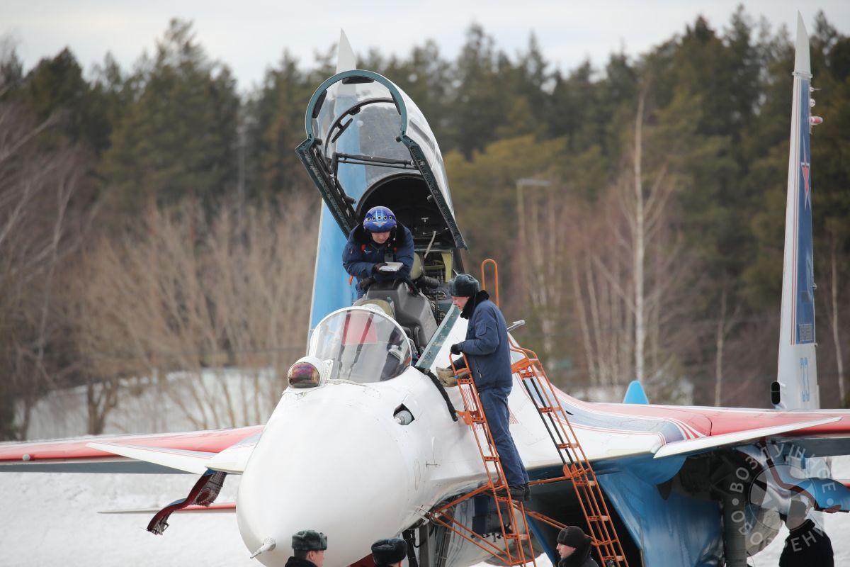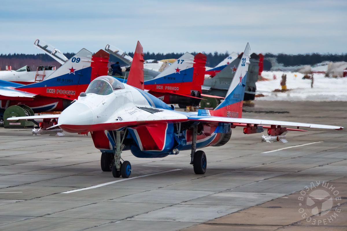На аэродроме Кубинка прошли плановые полёты экипажей авиационных групп высшего пилотажа «Русские Витязи» и «Стрижи», входе которых лётчики отработали практические пуски управляемых ракет «Воздух-Воздух».