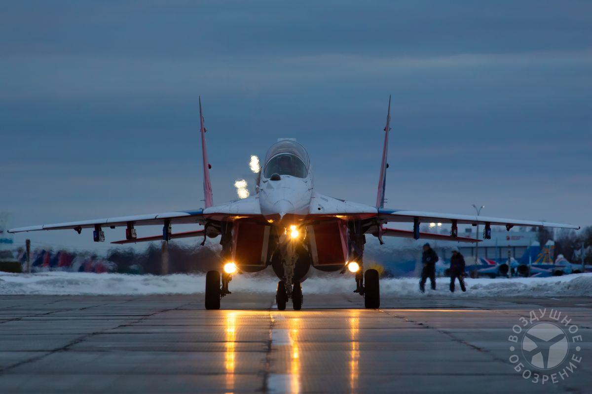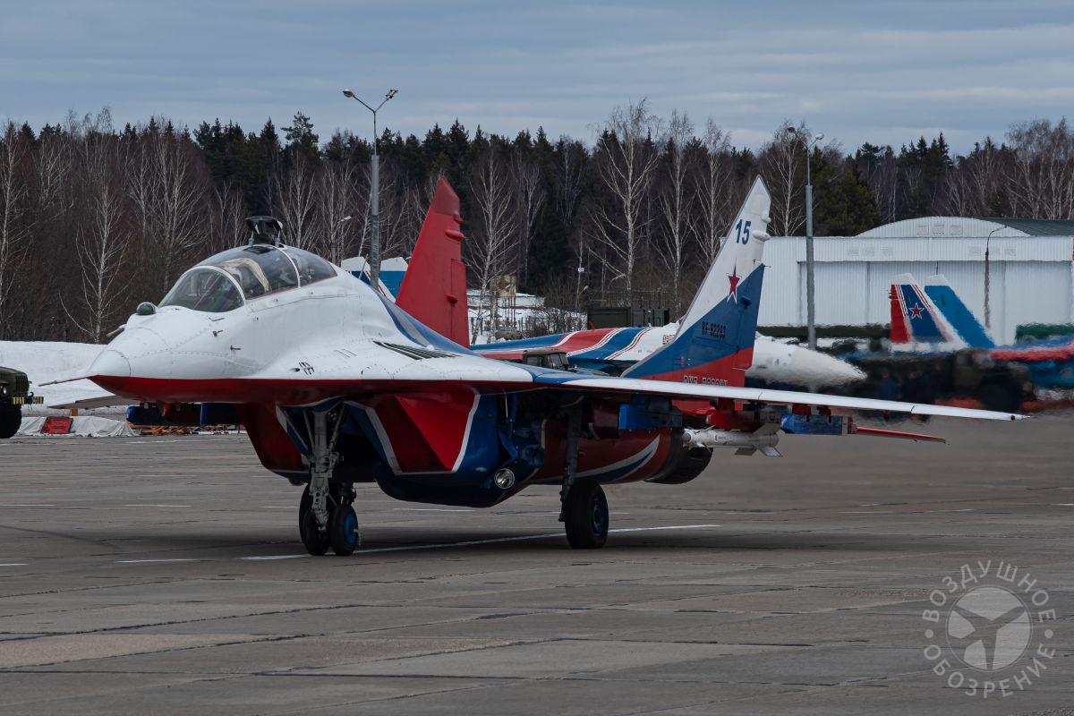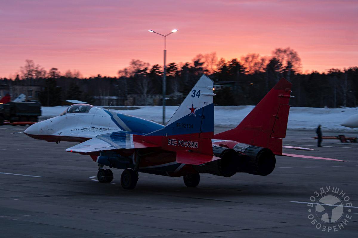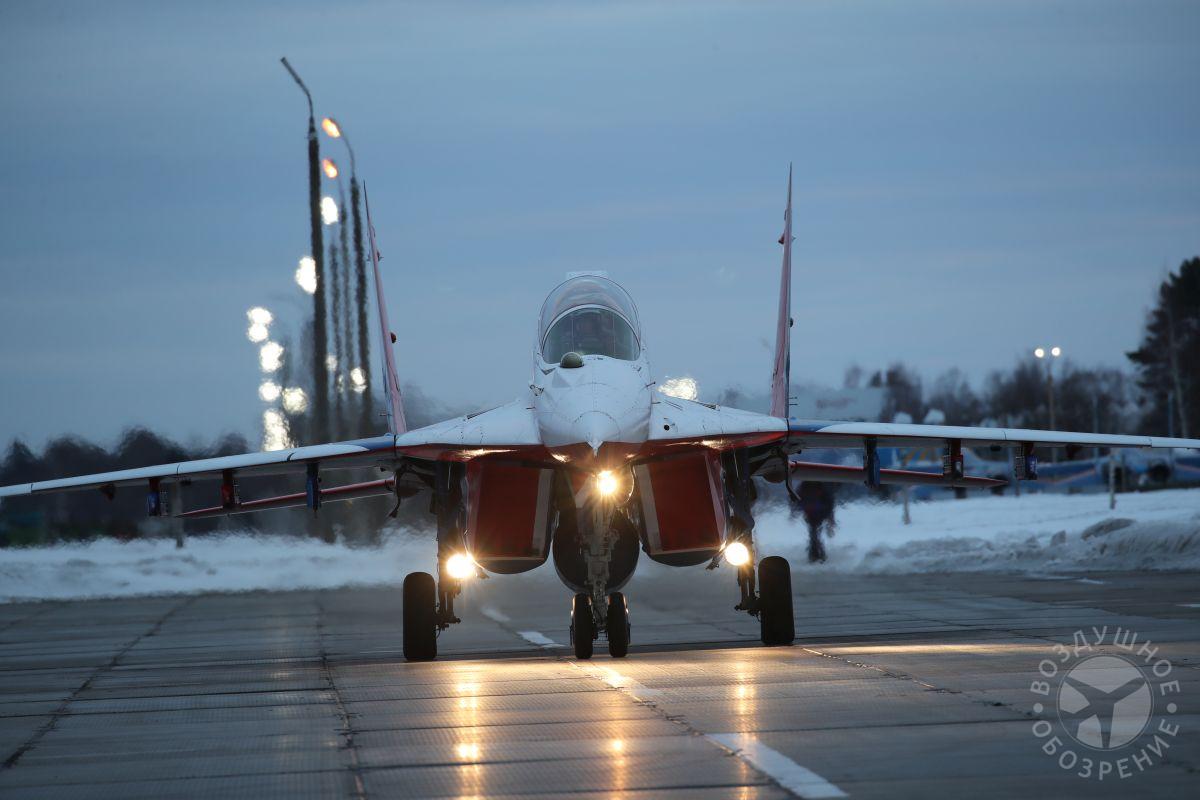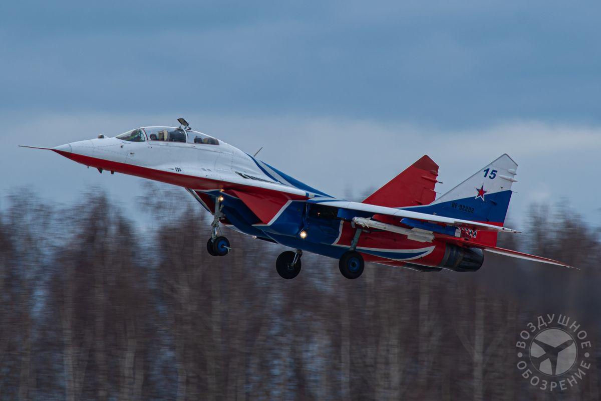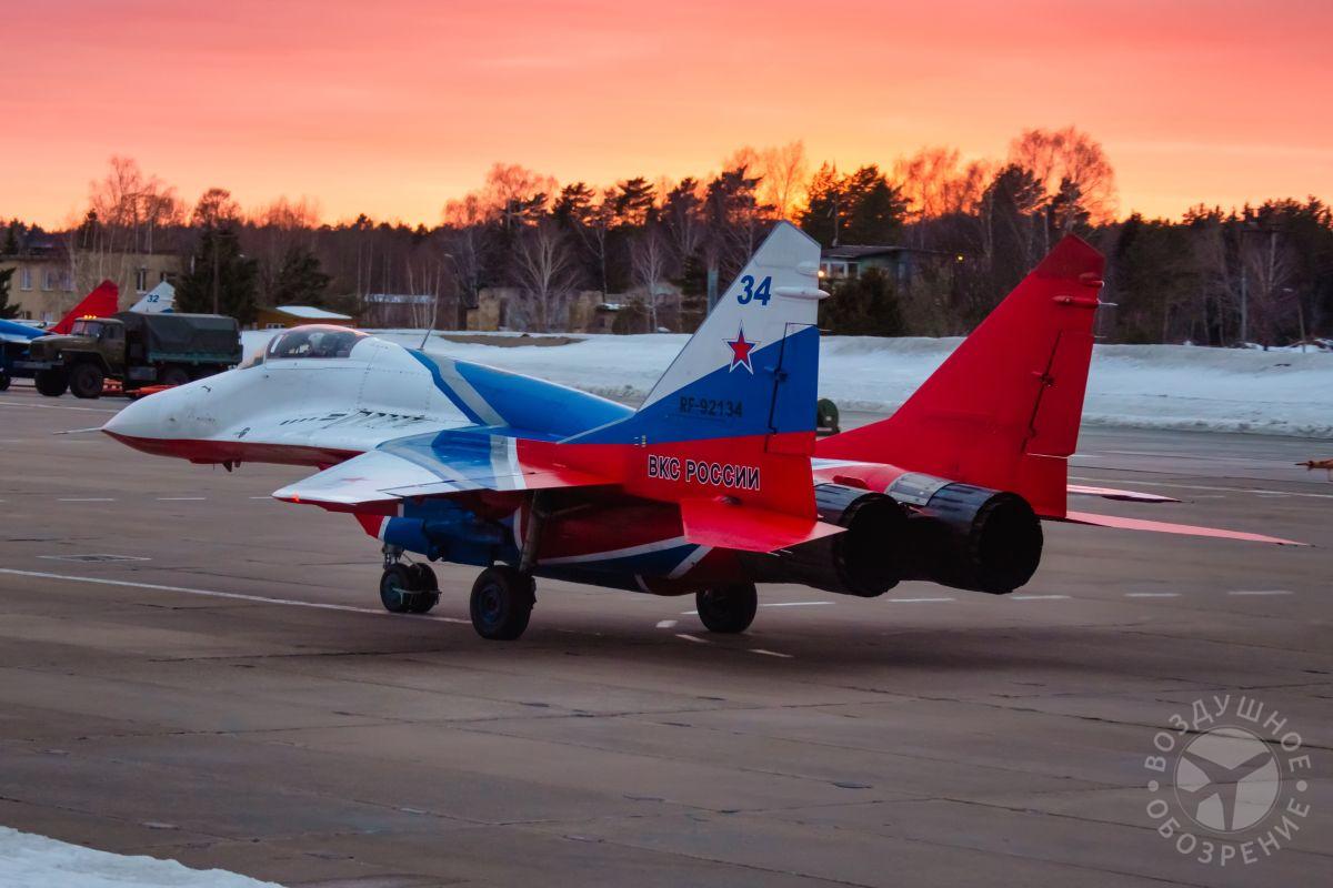 На аэродроме Кубинка прошли плановые полёты экипажей авиационных групп высшего пилотажа «Русские Витязи» и «Стрижи», входе которых лётчики отработали практические пуски управляемых ракет «Воздух-Воздух».