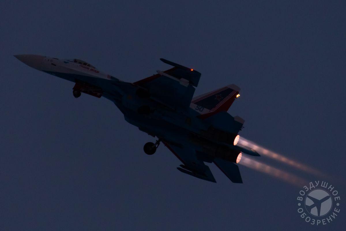 Всего в полётах были задействованы самолеты МиГ-29, Су-30см, Су-35с, а также более 10 экипажей Центра показа авиационной техники им.И.Н.Кожедуба (Кубинка).