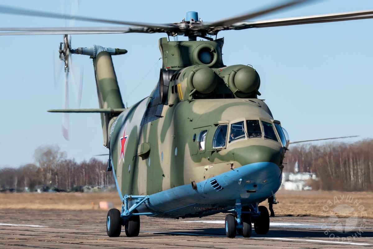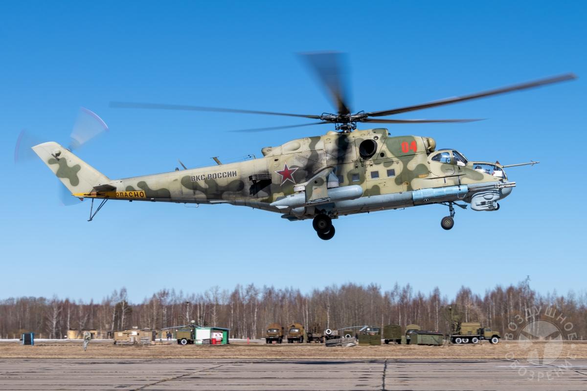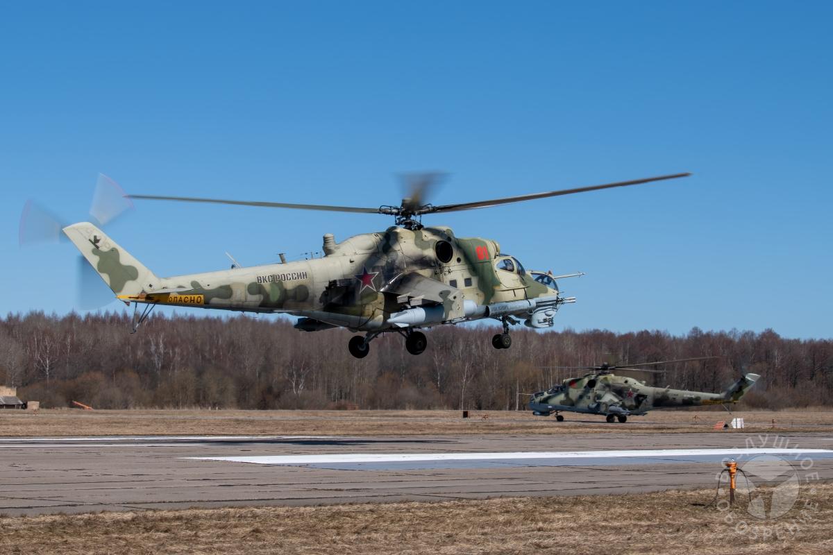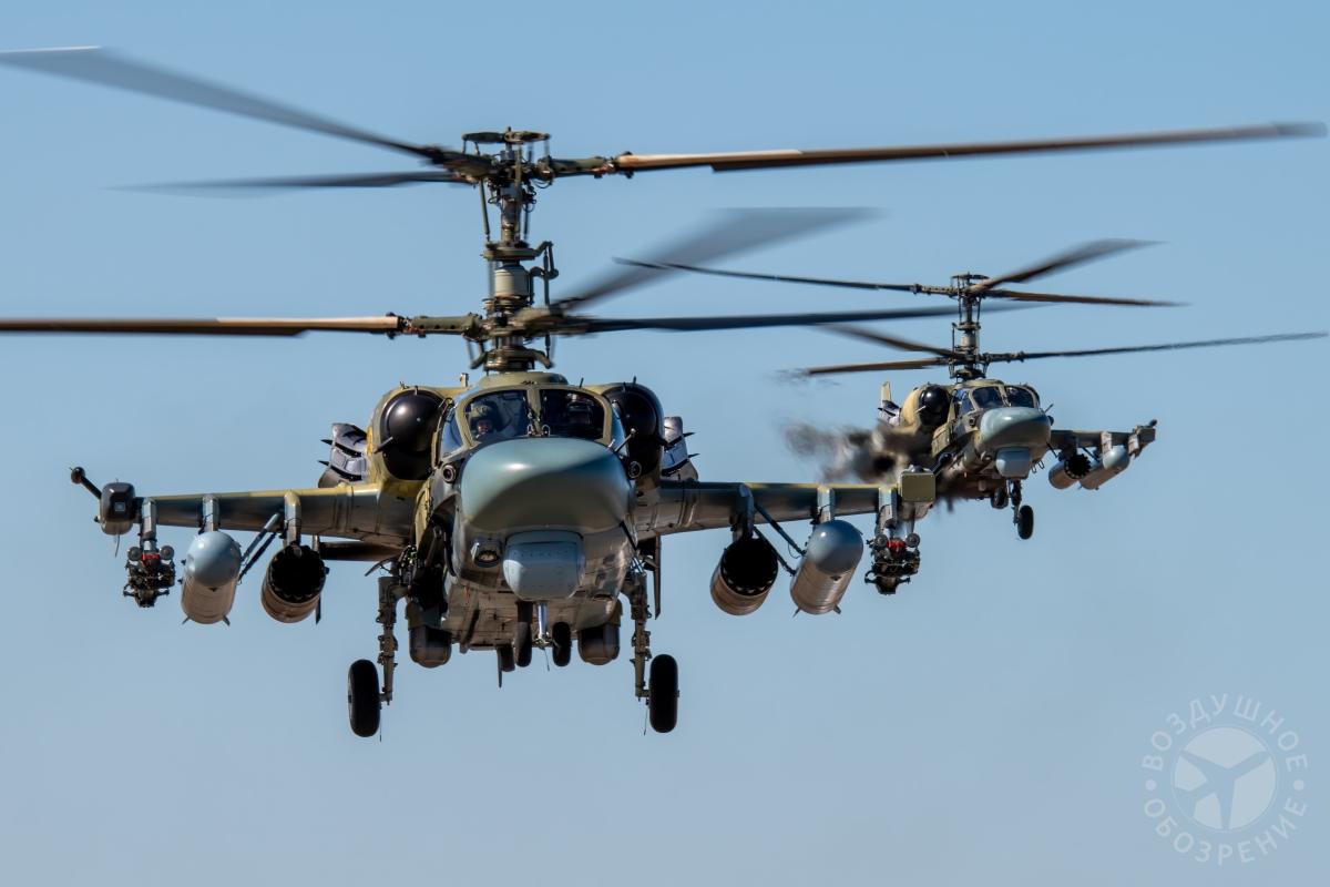Открывал воздушную часть парада самый большой транспортный вертолет Ми-26 в сопровождении ударных вертолетов Ми-24. За ним проследовали группы вертолетов армейской авиации ВКС Ка-52, Ми-28н, Ми-8 и Ми-24.