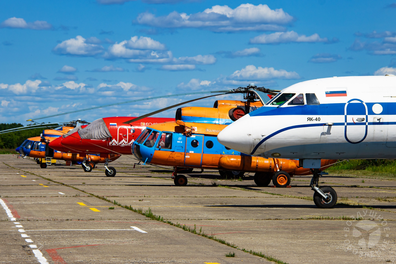 За пару дней, проведенных на аэродроме, удалось в полной мере оценить трафик и объем работы авиапредприятия. В объектив фотоаппарата попали все 4 Як-40, которые задействованы в выполнении регулярной программы пассажирских перевозок. Ан-2 вылетел на патрулирование лесов, медицинский Ми-8 с бригадой медиков отправился доставлять в медицинское учреждение пациента. С АРЗ после капитального ремонта прибыл вертолет Ми-8, который после дополнительной технической подготовки приступит к выполнению задач в интересах предприятия. Вологодские авиалинии приглашают выполнить полет на своих обновленных ярких самолетах!