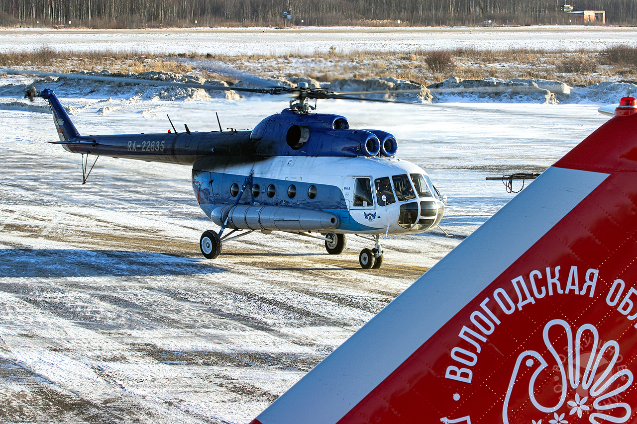 С первыми лучами солнца, которое отражается в огромных окнах аэровокзала, пассажиры занимают свои места в ярком красном самолете и вскоре машина уже спешит на взлетную полосу. Вылетает рейс в Пулково. Немного ранее отправился борт на Москву. Перед взлетом проходят все необходимые процедуры, в том числе и обработка поверхностей ото льда и снега. Днем на аэродроме тоже скучать не приходится. Прилетают вертолеты, как Вологодского авиапредприятия, так и других компаний, которым необходима дозаправка по пути следования и техническое обслуживание. В середине дня начинается подготовка рейса на Великий Устюг и встреча самолета из Петербурга. Небольшая пауза и уже в вечернее время возвращается рейс из Устюга, а завершает полетную программу прилет самолета из столицы.