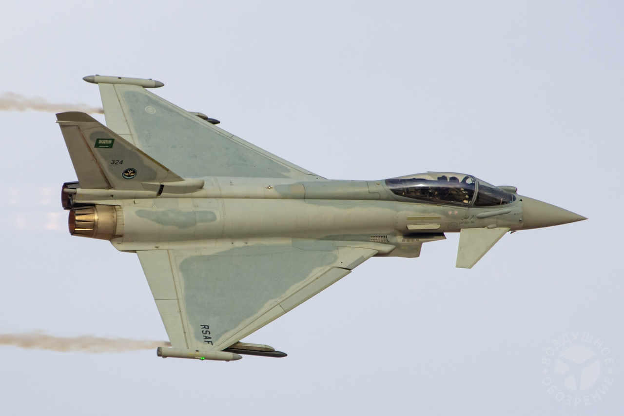 Также свои возможности продемонстрировал Eurofighter Typhoon — современный европейский многоцелевой истребитель.