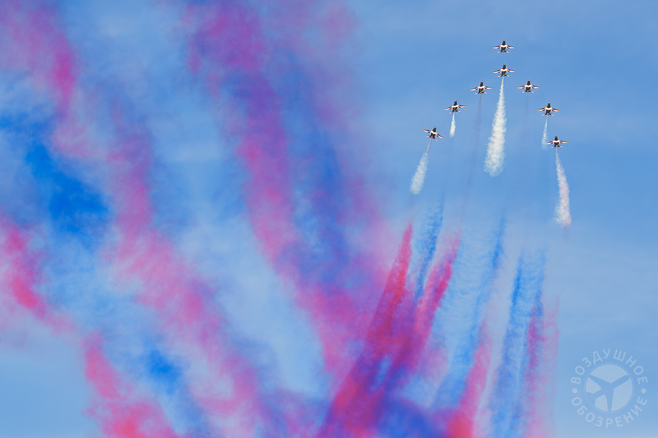 Одними из ключевых участников авиационной составляющей выставки стали самолеты и вертолеты американского производства. В небе над демонстрационной зоной можно было увидеть многофункциональный малозаметный истребитель-бомбардировщик пятого поколения Lockheed F-35, лёгкий истребитель четвёртого поколения F-16, тяжёлый всепогодный истребитель четвёртого поколения McDonnell Douglas F-15 Eagle. Эти самолеты выполняли демонстрационные пролеты, показывая возможности современной авиационной техники.