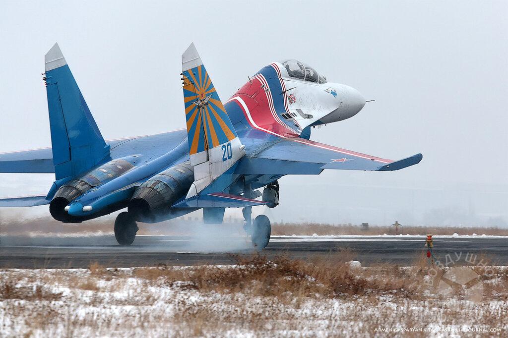 Пилотажная группа «Русские Витязи» завтра начинает свои демонстрационные полёты на Международном авиашоу «BIAS-2014» на аэродроме Сахир (Королевство Бахрейн). По пути в Бахрейн группа совершила посадку для дозаправки на авиабазе «Эребуни» в Армении. Об этом событии сегодня и пойдёт речь … 1. Про аномальную погоду в Армении, которая вот уже второй месяц не даёт жителям Еревана увидеть солнце и одаривает морозами, я уже рассказывал ранее. День прилёта не стал исключением. С самого утра постоянно уточнялись минимумы и запрашивалась фактическая видимость у подходящих на Звартноц гражданских судов. Вылет из Кубинки откладывался час за часом из-за погоды в Ереване …2. Но всё же […]