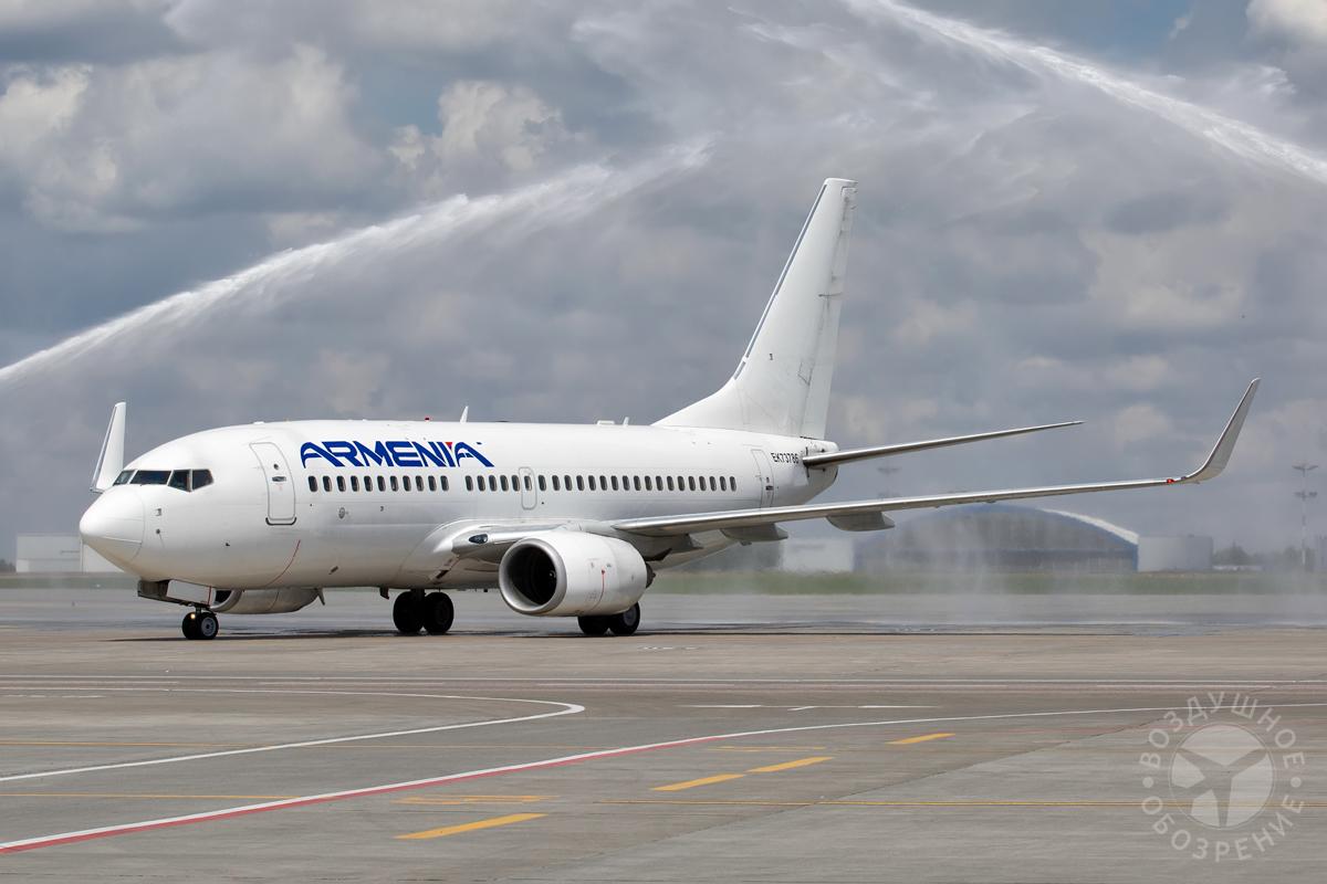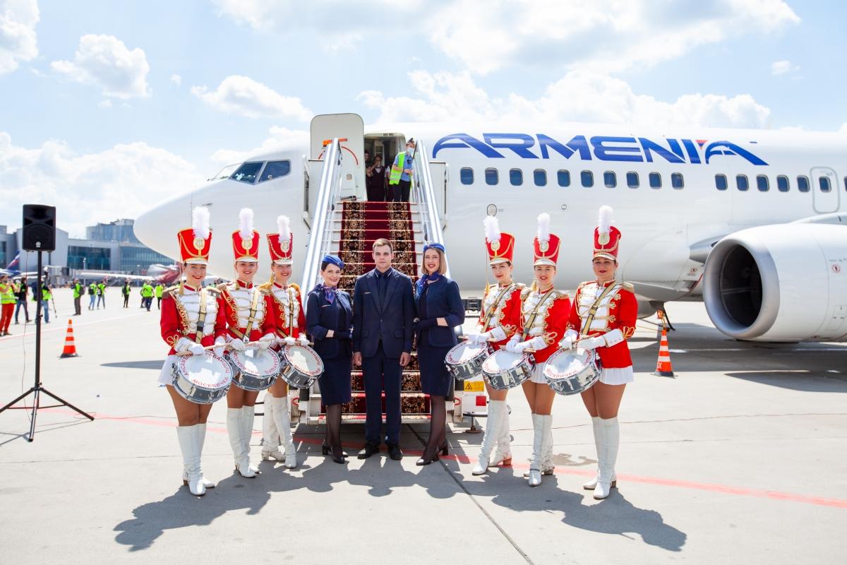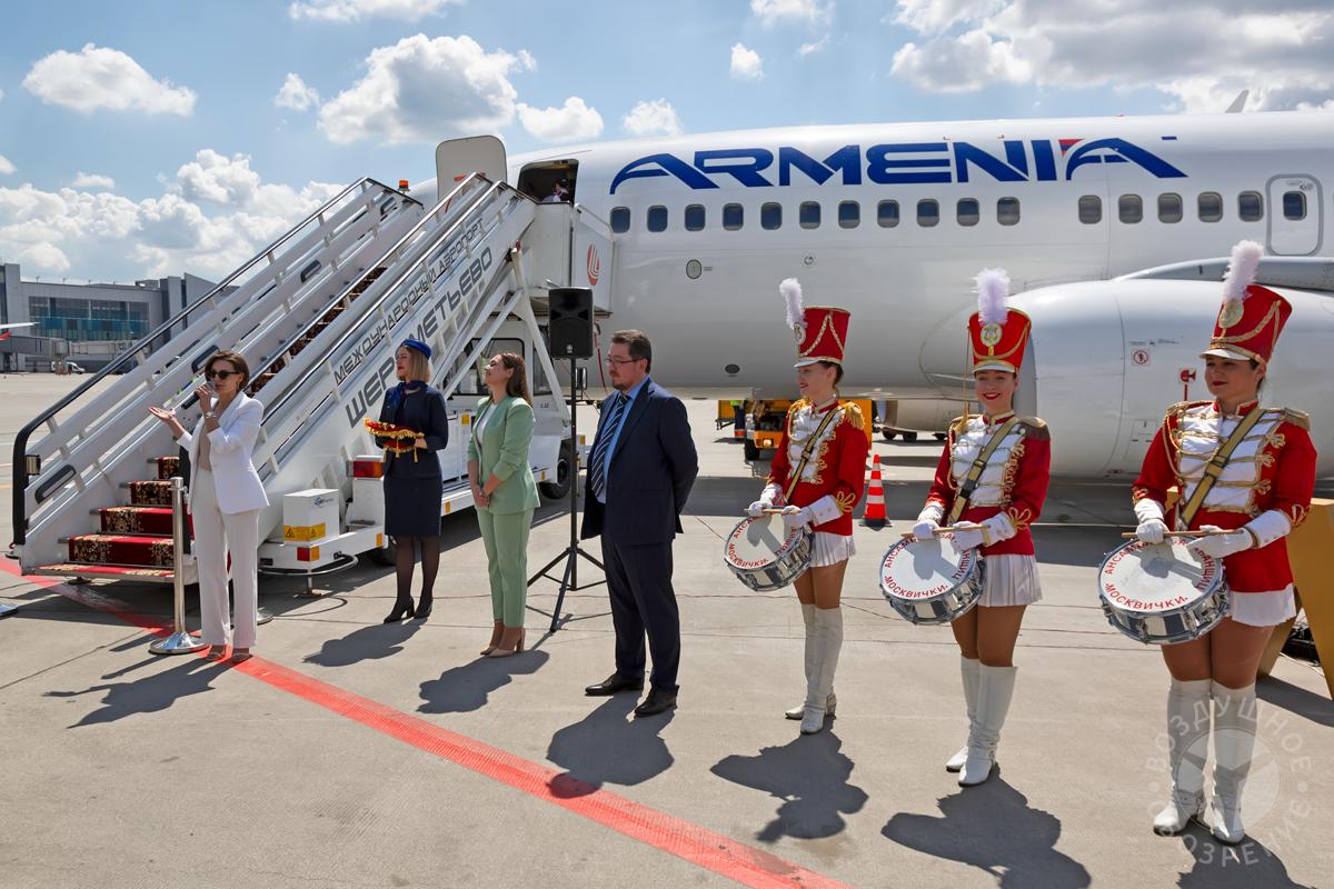 В честь прибытия первого рейса прошло торжественное мероприятие и приветственная шоу-программа, с участием представителей руководства АО «МАШ» и «Авиакомпании Армения». Для пассажиров авиаперевозчика, вылетающих по маршруту «Москва – Ереван», была организована праздничная регистрация. По традиции самолет Boeing 737-700 «Авиакомпании Армения» выполнивший первый рейс встретили водной аркой.