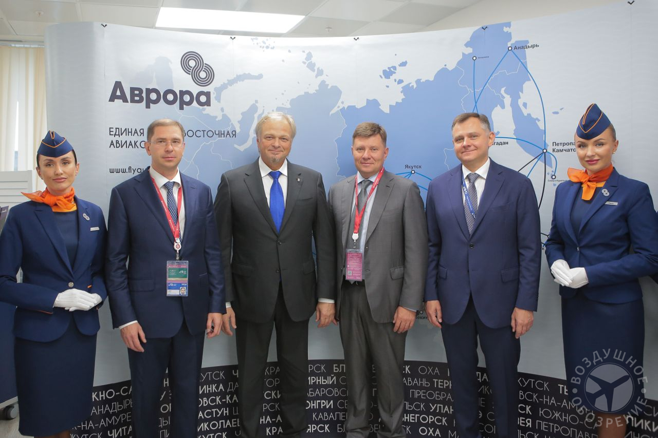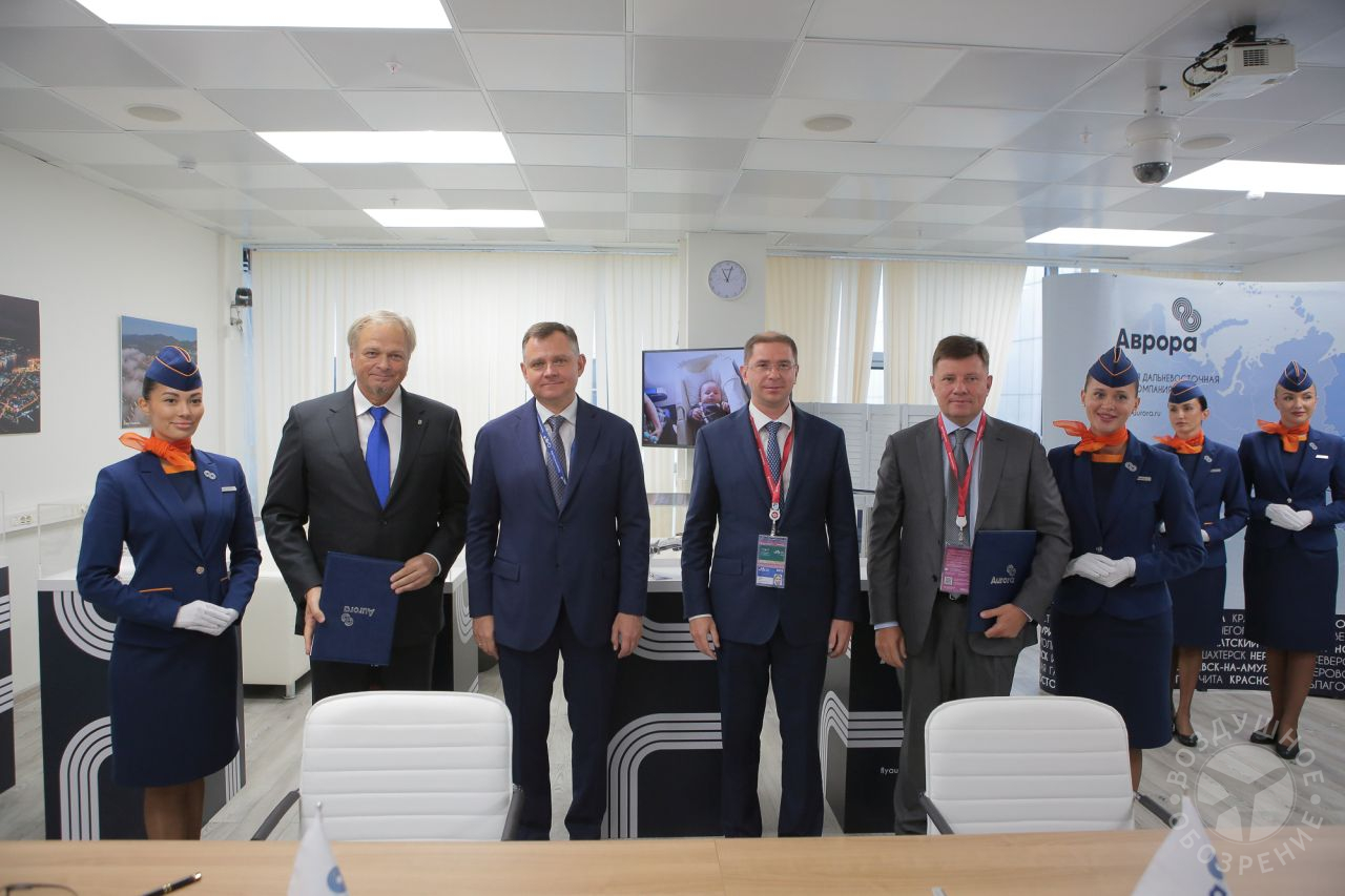 ПАО «Яковлев» (входит в ПАО «ОАК» Госкорпорации Ростех) и АО «Авиакомпания «Аврора» в рамках IX Восточного экономического форума подписали соглашение о намерениях на поставку пяти среднемагистральных самолетов МС-21 и двух ближнемагистральных SJ-100. Свои подписи на документе поставили заместитель генерального директора ПАО «ОАК» по гражданской авиации, генеральный директор ПАО «Яковлев» Андрей Богинский и генеральный директор Авиакомпании «Аврора» Константин Сухоребрик.