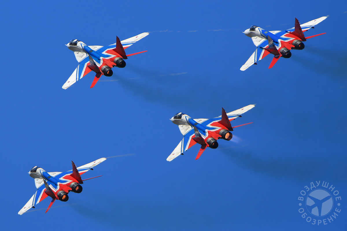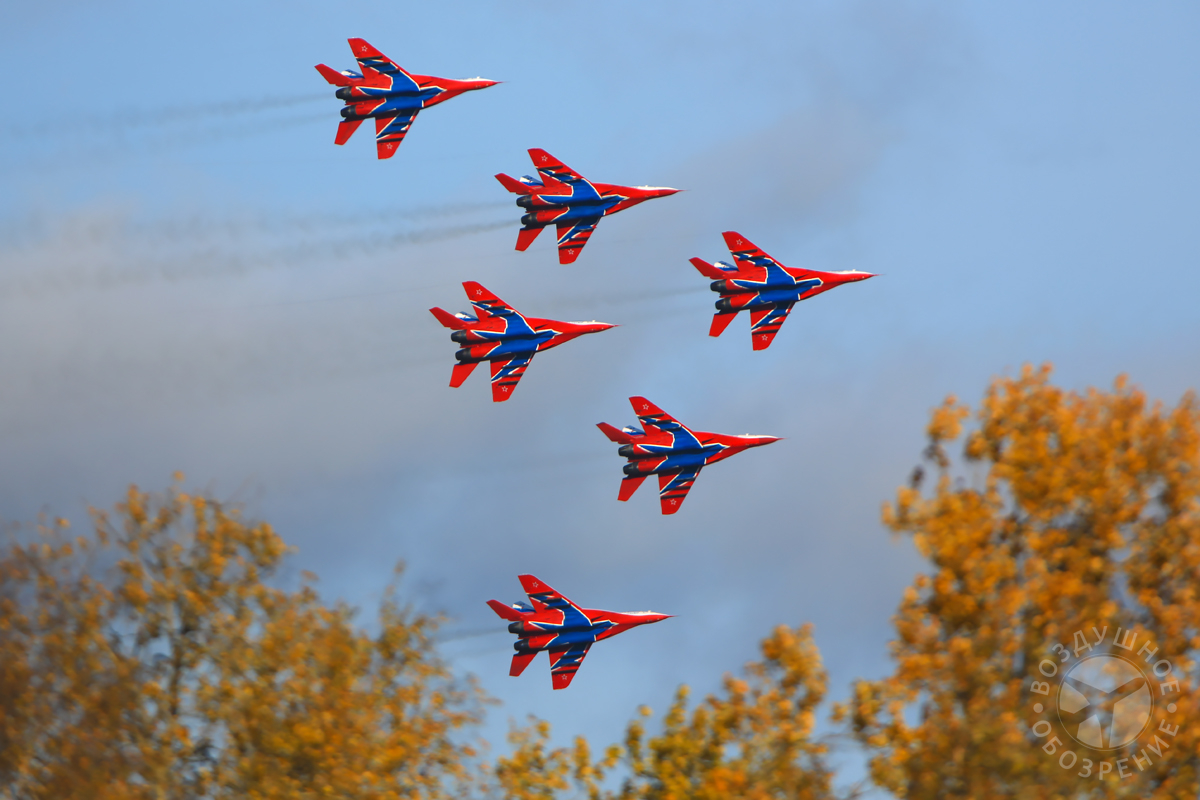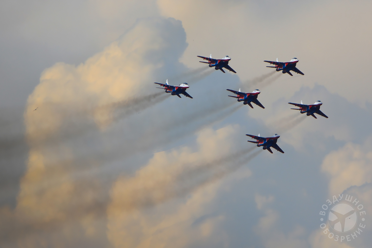 Пожелаем же этой замечательной, всеми любимой пилотажной группе самых ярких и светлых моментов в их нелегком труде. А еще хочется поблагодарить Стрижей за популяризацию авиационных профессий и любви к Отечеству среди подрастающего поколения. Ведь невозможно остаться в стороне, наблюдая акробатику этих рыцарей неба, как управляют они юркими МиГами, сплоченными в едином строю и скользящими по небосводу в едином порыве силы и красоты.