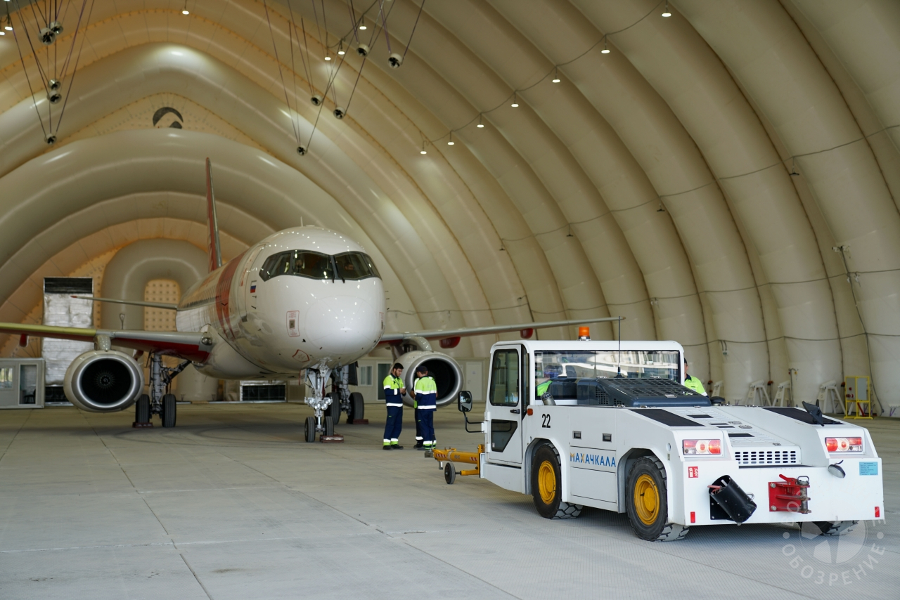 Компания «Яковлев» (входит в ОАК Госкорпорации Ростех) ввела в эксплуатацию пневмокаркасный ангар линейной станции технического обслуживания в аэропорту Махачкалы. Здесь будут проводить сервисные работы с воздушными судами, в том числе российскими ближнемагистральными самолетами SSJ-100, а в перспективе и среднемагистральными МС-21. Один из авиалайнеров принял участие в церемонии – им стал SSJ-100 авиакомпании Red Wings.